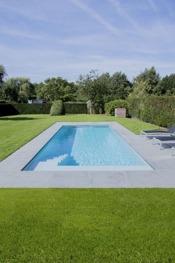 Piscina con zona descansoPiscina rectangularPiscina en L